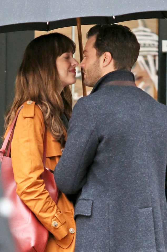 Action! Dakota Johnson and Jamie Dornan Share a Hot Kiss in the Rain While Shooting Fifty Shades