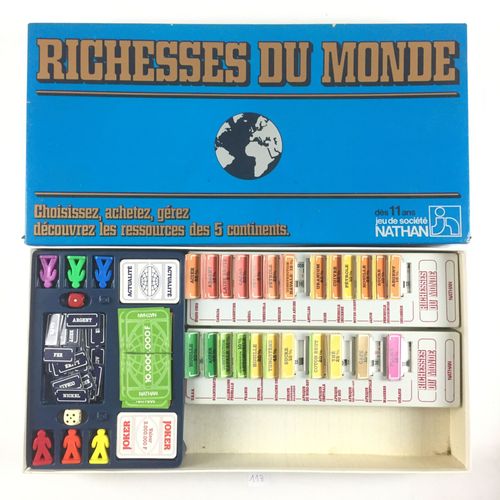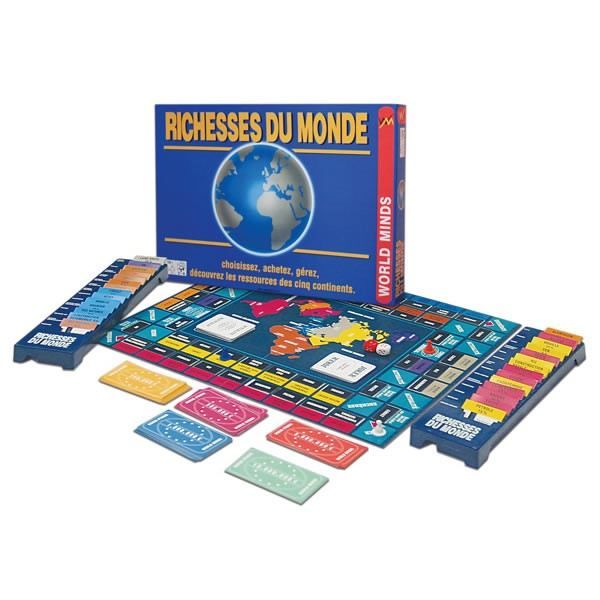Jeu de société d'actions, Richesses du Monde. Le but du jeu est d'acquérir un maximum de richesses (aluminium, coton, cuivre) en parcourant le monde et être le plus riche de tous les joueurs. Tactique, réflexion et audace sont de rigueur dans ce jeu familial pour 2 à 6 joueurs.