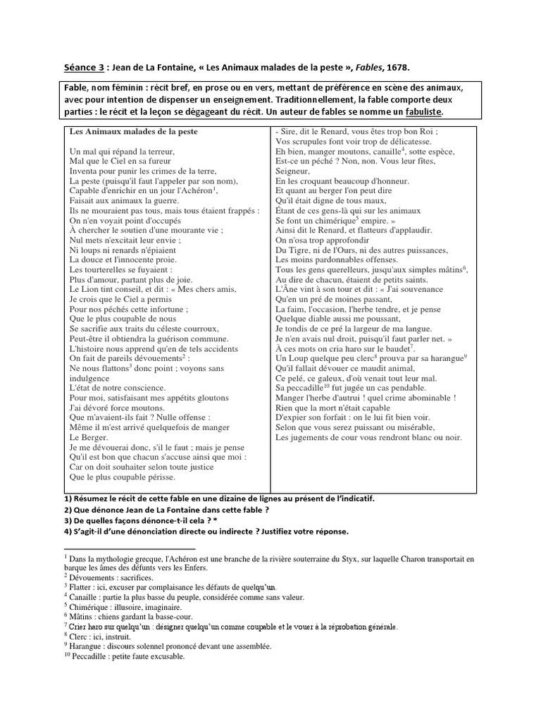 Séance 3 Jean de La Fontaine Les Animaux Malades de La Peste Fables 1678 PDF Fable