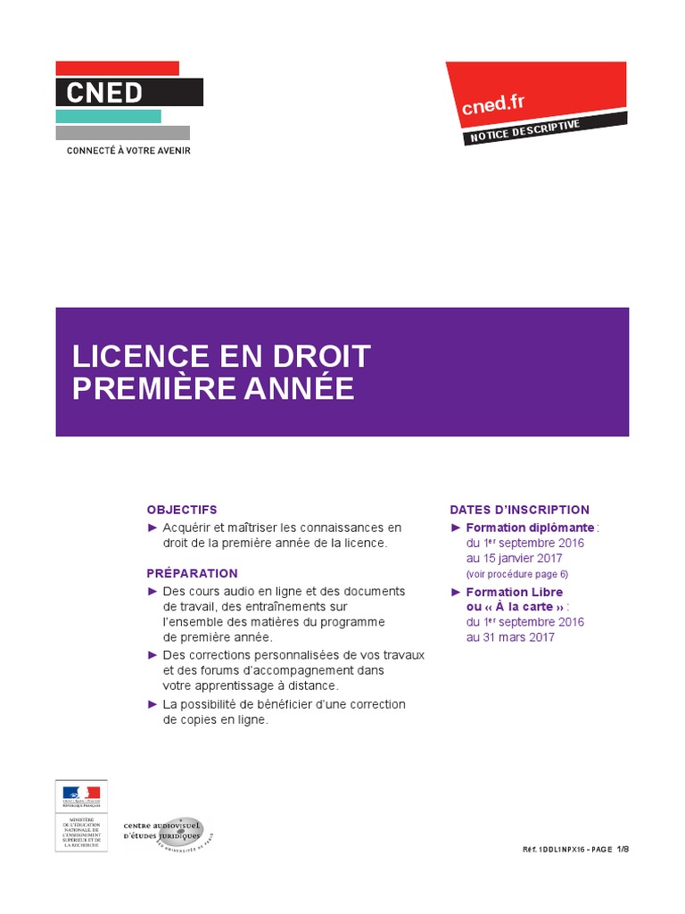 LICENCE 2 en DROIT A DISTANCE année 20152016