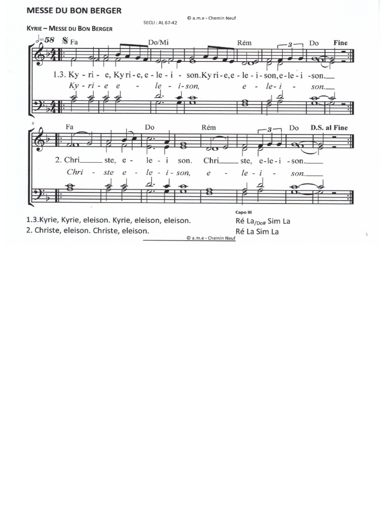 Download and print in PDF or MIDI free sheet music of messe_bon_berger_entier-AL67_42-DP-SATB - Communauté du Chemin Neuf for Messe_Bon_Berger_Entier-Al67_42-Dp-Satb by Communauté du Chemin Neuf arranged by Rosanna999 for Piano (SATB)
