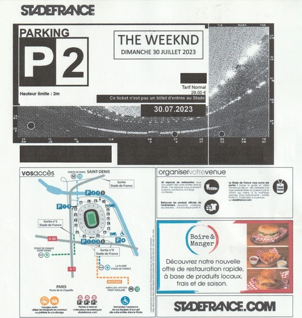 THE WEEKND PLACE de parking stade de France 30 juillet 2023 EUR 33,00 PicClick FR