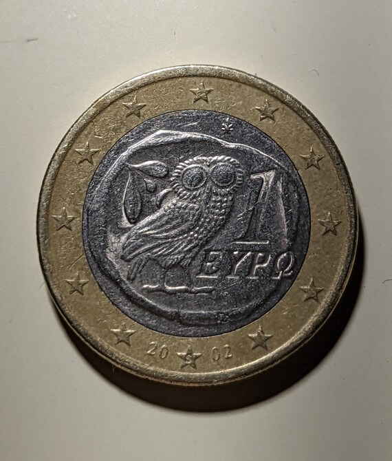 Pièce de 1 euro 2002 Grèce Hibou avec marque S Etsy France